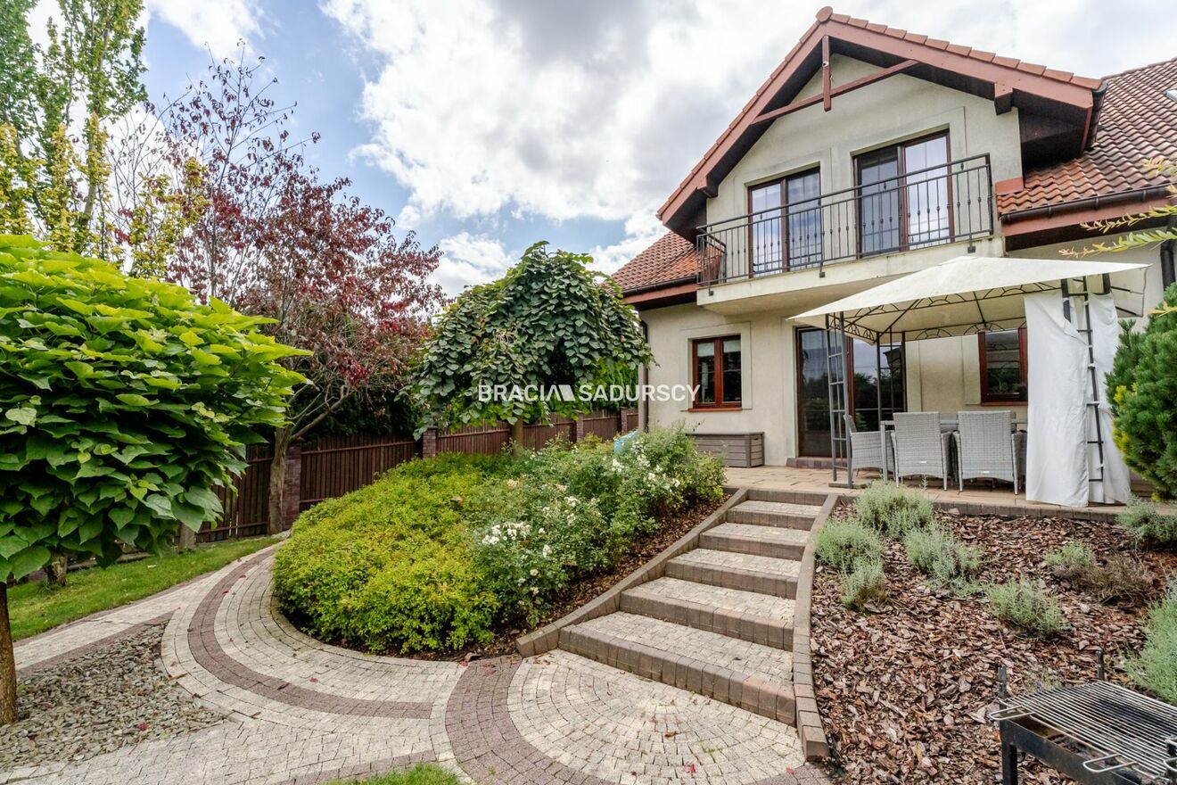 Około 9,5 arowa !!! działka wokół domu została starannie zagospodarowana - znajduje się tu duży taras , ogród podzielony na dwie strefy , system automatycznego nawadniania oraz siatka przeciw kretom . Przed domem znajdują się miejsca parkingowe, a z tyłu - przestrzeń idealna do relaksu i spotkań z bliskimi.