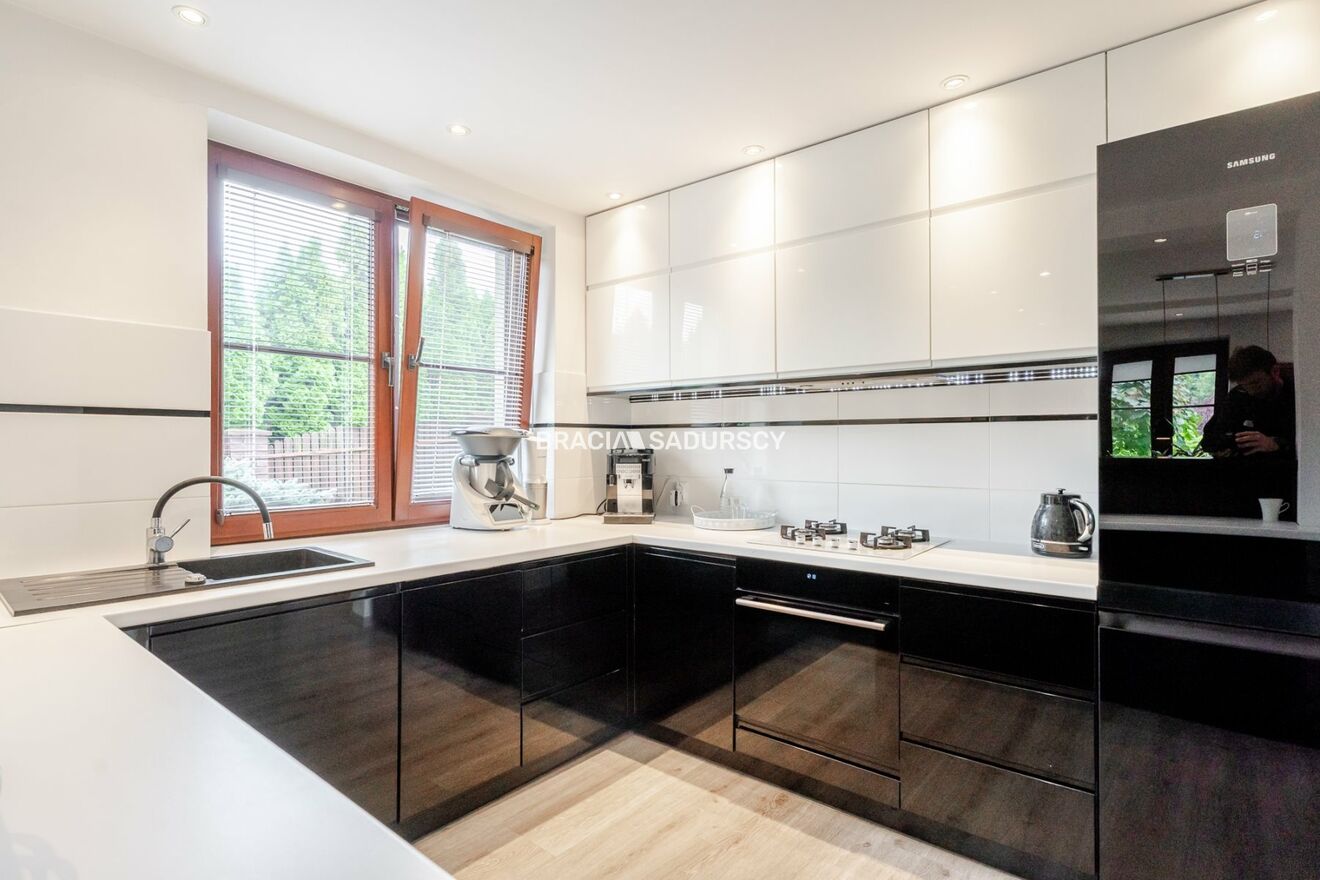 W całym domu zamontowane są rolety wewnętrzne oraz moskitiery , co zapewnia komfort i ochronę przed owadami. Budynek posiada również instalację fotowoltaiczną , co znacząco obniża koszty eksploatacyjne. Dom do odświeżenia, odmalowania ścian. Nie WYMAGA dodatkowych nakładów finansowych- WSZYSTKO w domu działa sprawnie. Bardzo dużym atutem nieruchomości jest duża jak na zabudowę bliźniaczą działka pod lasem o powierzchni 9,4 ara z zagospodarowanym ogrodem. Staro krzew i staro drzew to niewątpliwie ogromny atut tej nieruchomości.